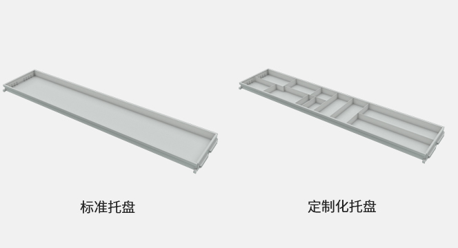 储物托盘是用于在提升库内部周转的存储物料的载具。正常情况下,乾德提供标准化托盘。也可以提供其他定制化托盘(可根据实际情况单独设计)。